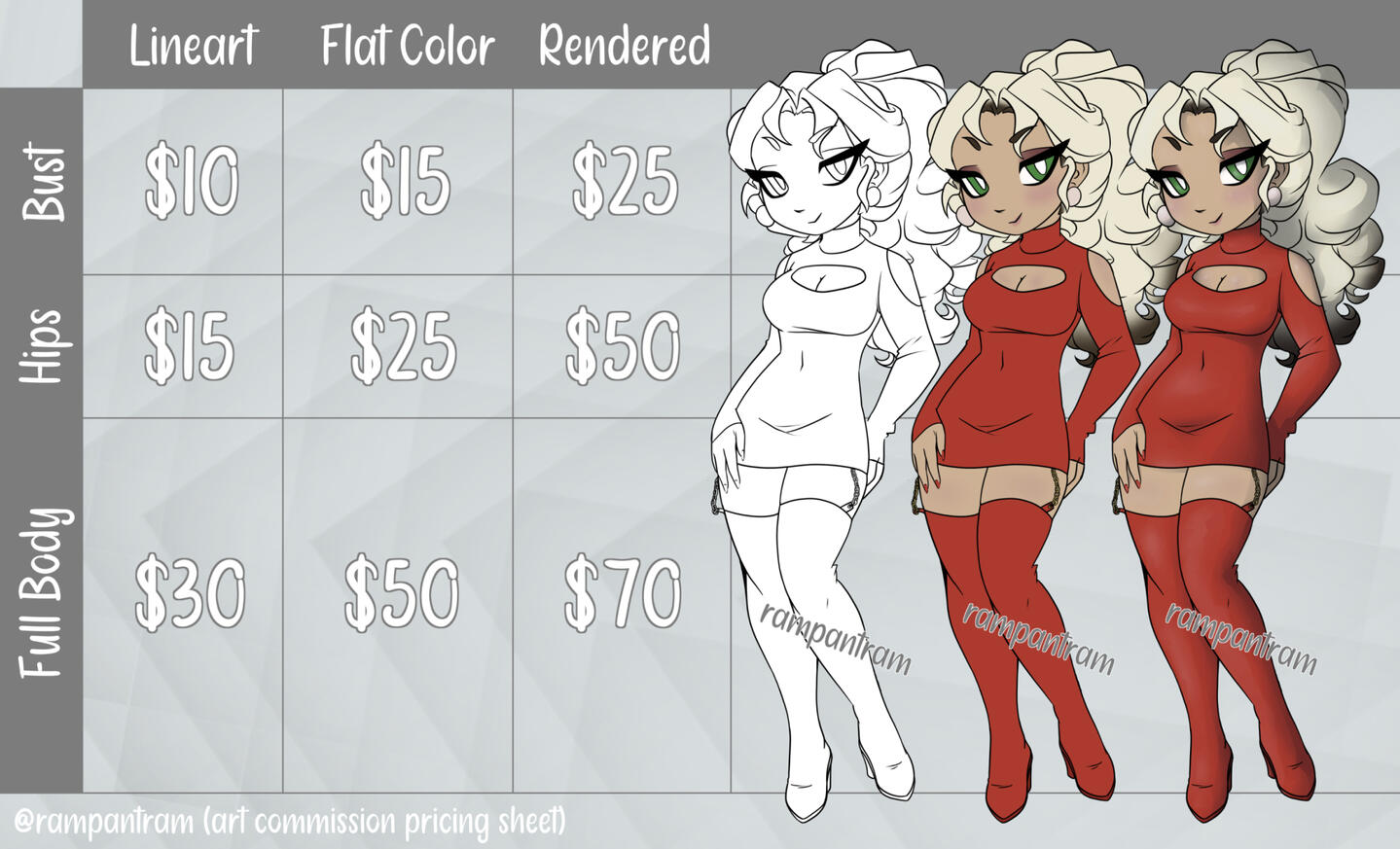 Detailed: $25 | $50 | $75 (based on character size)